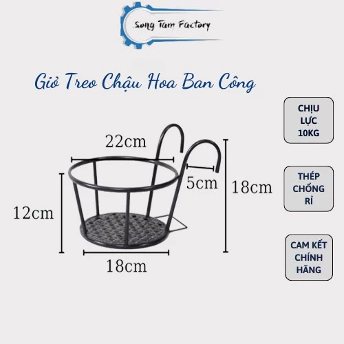 🌱Giá có móc sắt treo ban công làm bằng sắt phi 5.5 vững chắc, sơn tĩnh điện đen trắng sang trọng kèm phẩn giỏ với chất liệu nhựa PP độ dày đường kính phi 6 độ đàn hồi tốt không làm biến dạng giỏ hoa trong quá trình vận chuyển, và đặc biệt là chống trầy xước, chống gỉ do bị ô xi hóa vì ở ngoài trời lâu ngày hay tiếp xúc với nước thường xuyên. 🌱Giỏ treo chậu hoa cây cảnh ban công Song Tâm chắc chắn sẽ làm điểm nhấn thu hút cho không gian ban công, hàng rào nhà bạn. 🌱Với những căn hộ chung cư chật hẹp, có ít diện tích trồng và chăm sóc cây, hoa theo sở thích thì những chiếc móc treo ban công sẽ là giải pháp hoàn hảo dành cho bạn. 🌱Những chiếc giá có thể treo móc trên lan can, ban công, hàng rào quanh nhà. Cách làm này có thể giúp tiết kiệm những khoảng không gian nhỏ nhất giúp nhà bạn thêm nhiều cây xanh, ngôi nhà sẽ trong lành hơn, sinh động hơn. 🌿Màu sắc: đen, trắng. Kích thước: Chiều cao tính đến miệng: 12cm Đường kính miệng (lòng trong): 22cm Đường kính đáy (lòng trong): 18cm